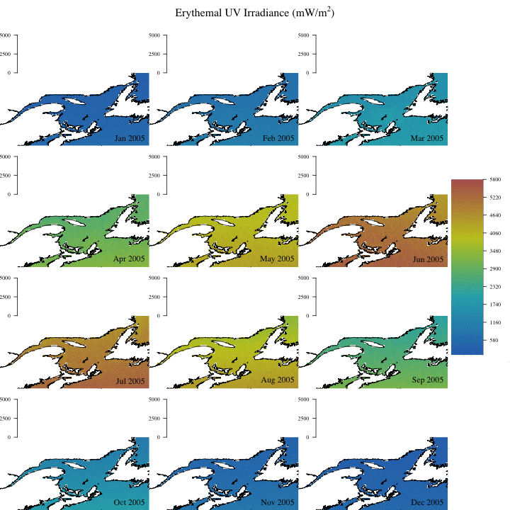 Animations in R: Time series of erythemal irradiance in the St. Lawrence