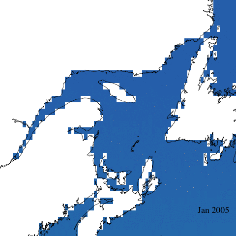 As part of my PhD thesis, I am currently characterizing the intensity of multiple stressors in the estuary and gulf of St. Lawrence (see ResearchGate project for more details). I have recently needed (read: thought it would be cool) to create an animation of the temporal variations in ultra-violet intensity in the St. Lawrence. Here is how I did it.