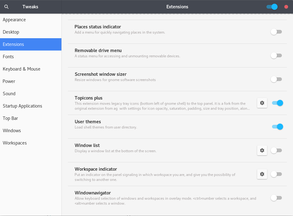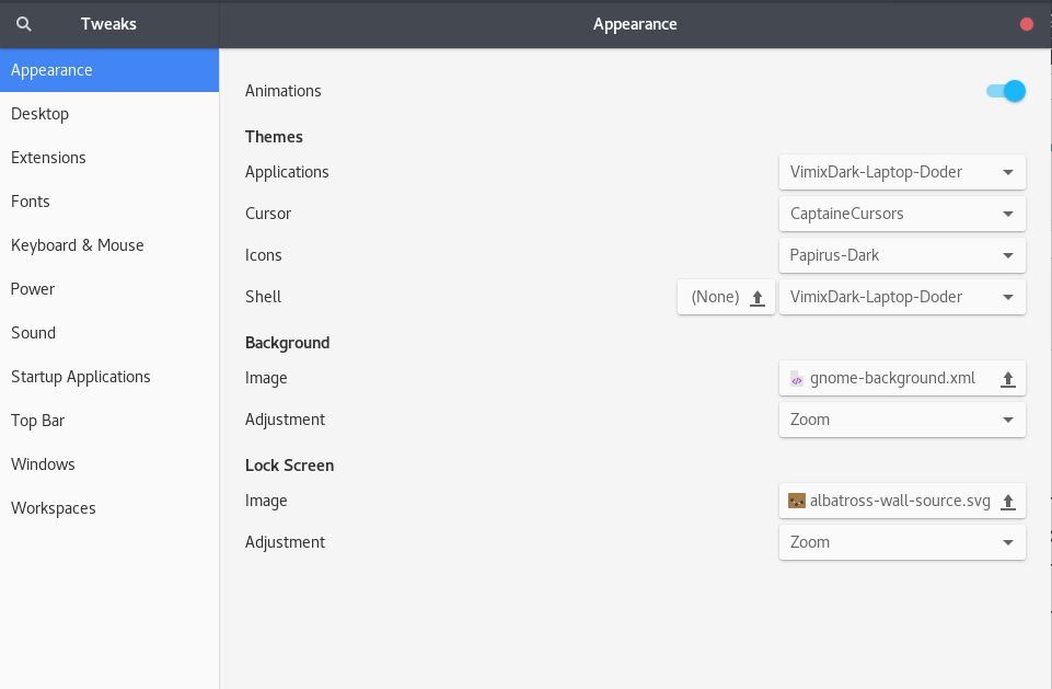 - I chose the Vimix theme and I added the user theme that was disabled,